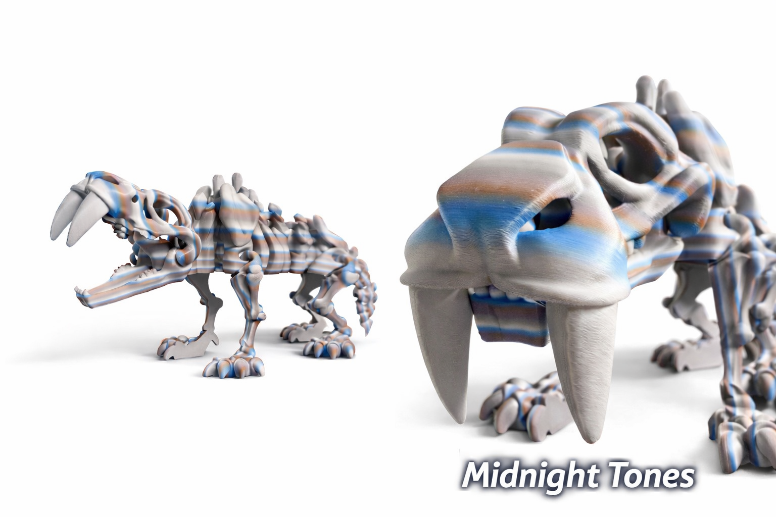 Meet the Sabertooth – a bold, prehistoric showpiece that stands out with its large size, powerful stance, and signature curved fangs. This oversized collectible makes an eye-catching display for shelves, desks, and collections, perfect for anyone who loves dinosaurs or unique 3D-printed creatures.